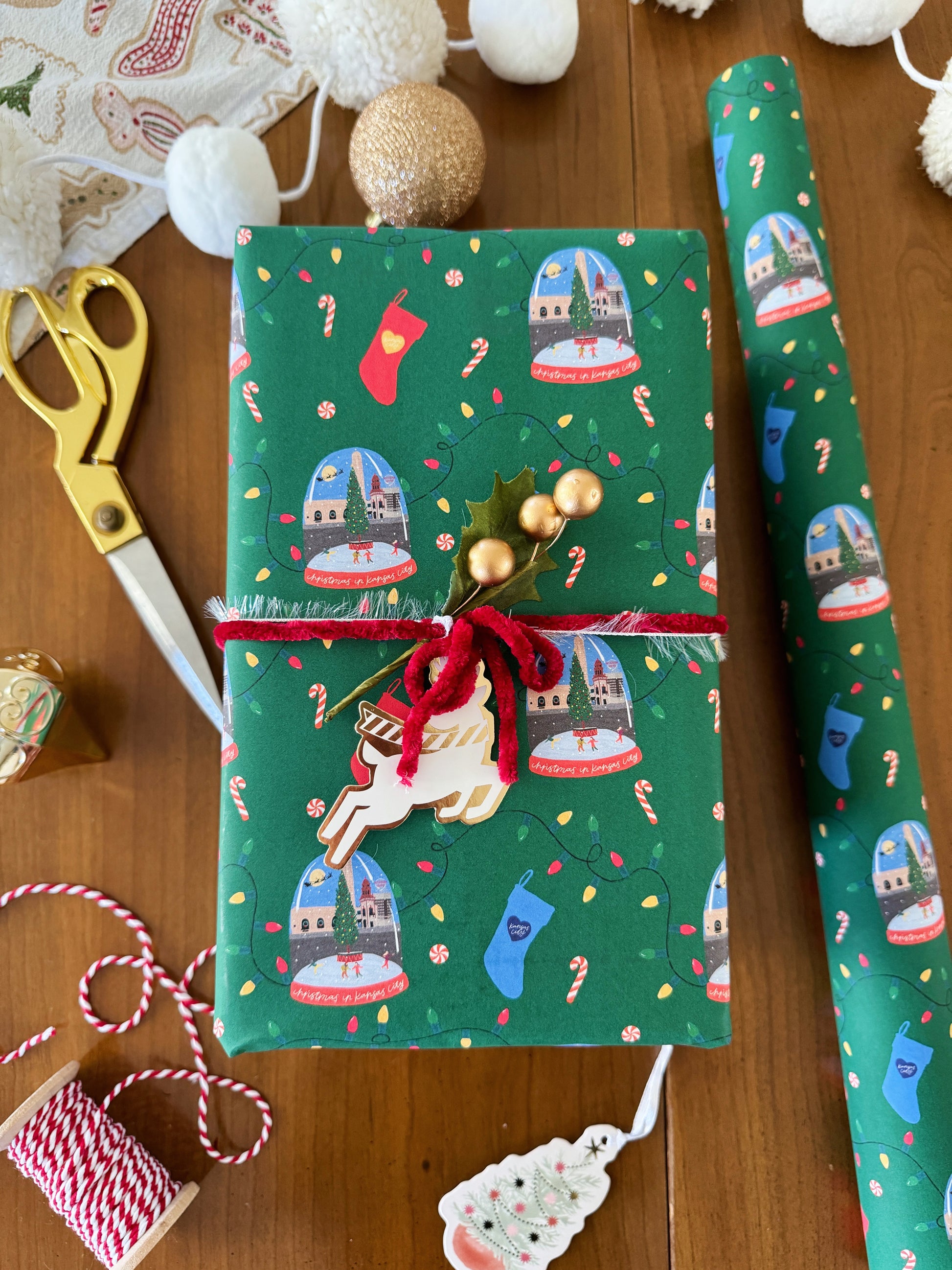 Bring the magic of Kansas City to your holiday season with my charming Christmas wrapping paper! This festive design features a beautiful Kansas City snowglobe, cozy stockings, and sweet candy canes - perfect for wrapping gifts for friends, family, or anyone who loves the heart of the Midwest