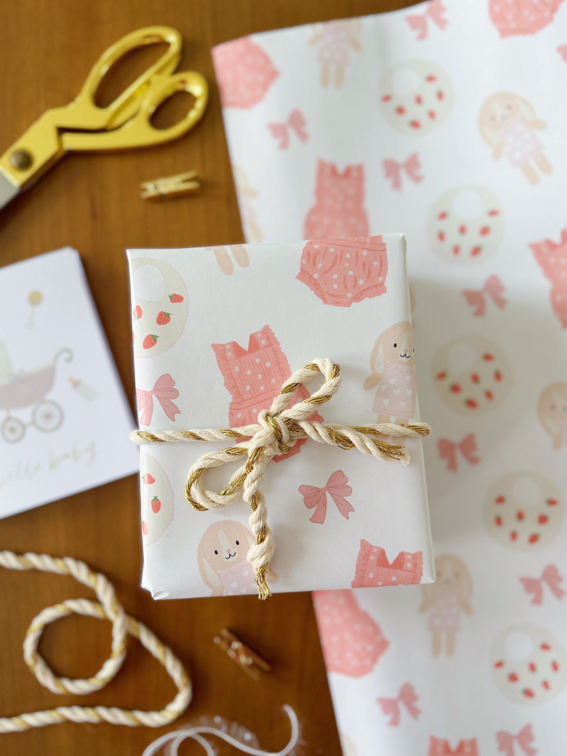 Celebrate the arrival of a precious baby girl with this charming wrapping paper! Perfect for baby showers, newborn gifts, birthdays, and special surprises, this delightful wrap adds an extra touch of love to any present
