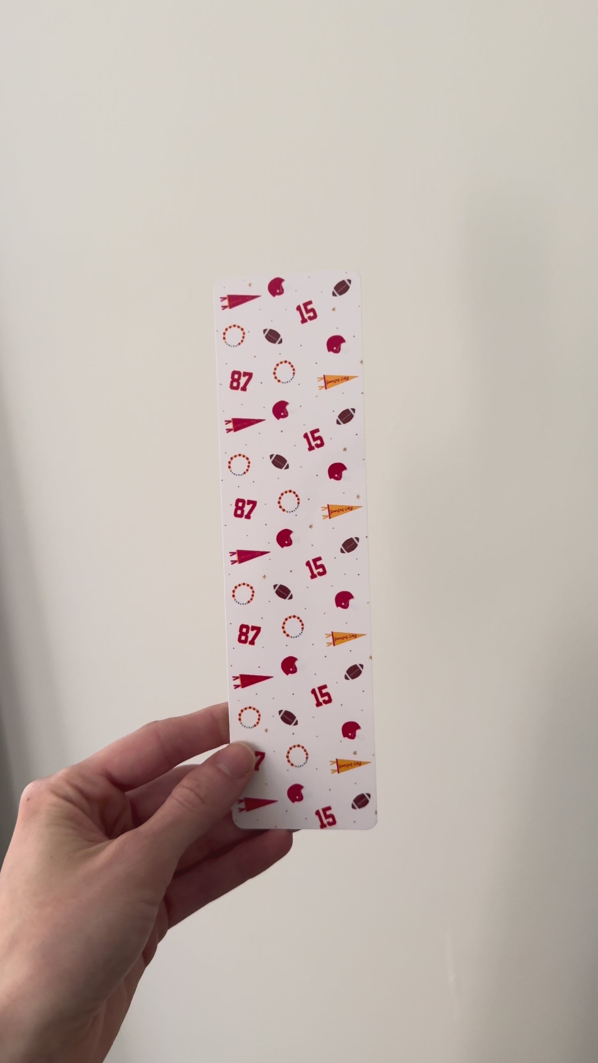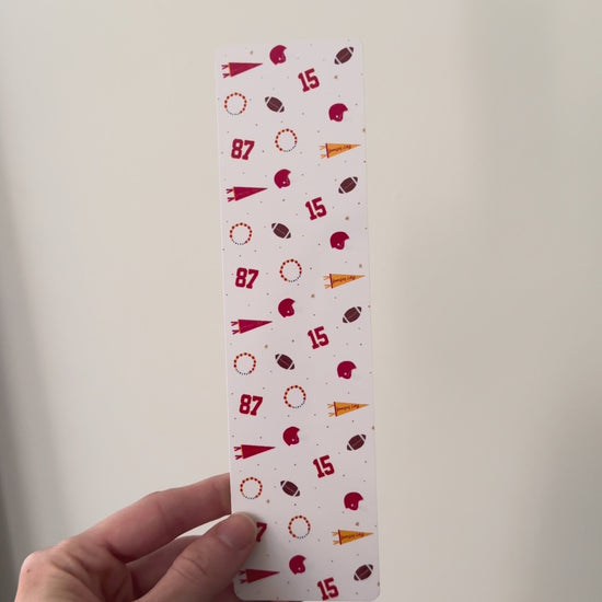 These bookmarks (set of 2) celebrates Kansas City football with red and yellow designs featuring KC-inspired emblems like player numbers “15” and “87”, KC red and yellow hearts plus pendants that say Kansas City. It's perfect for football fans, Kansas City locals, or anyone who loves a touch of KC football