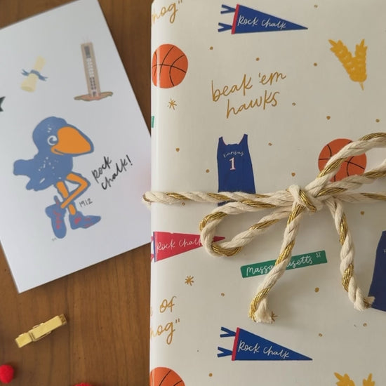 Show your KU pride with this stunning wrapping paper featuring the iconic landmarks of the University of Kansas! Whether you're an alum, a current student, or a passionate fan, this print is the perfect way to celebrate the beauty and history of your beloved university. From the majestic spires of the Mass Street to the historic Allen Fieldhouse, this artwork captures the essence of KU’s most recognizable spots