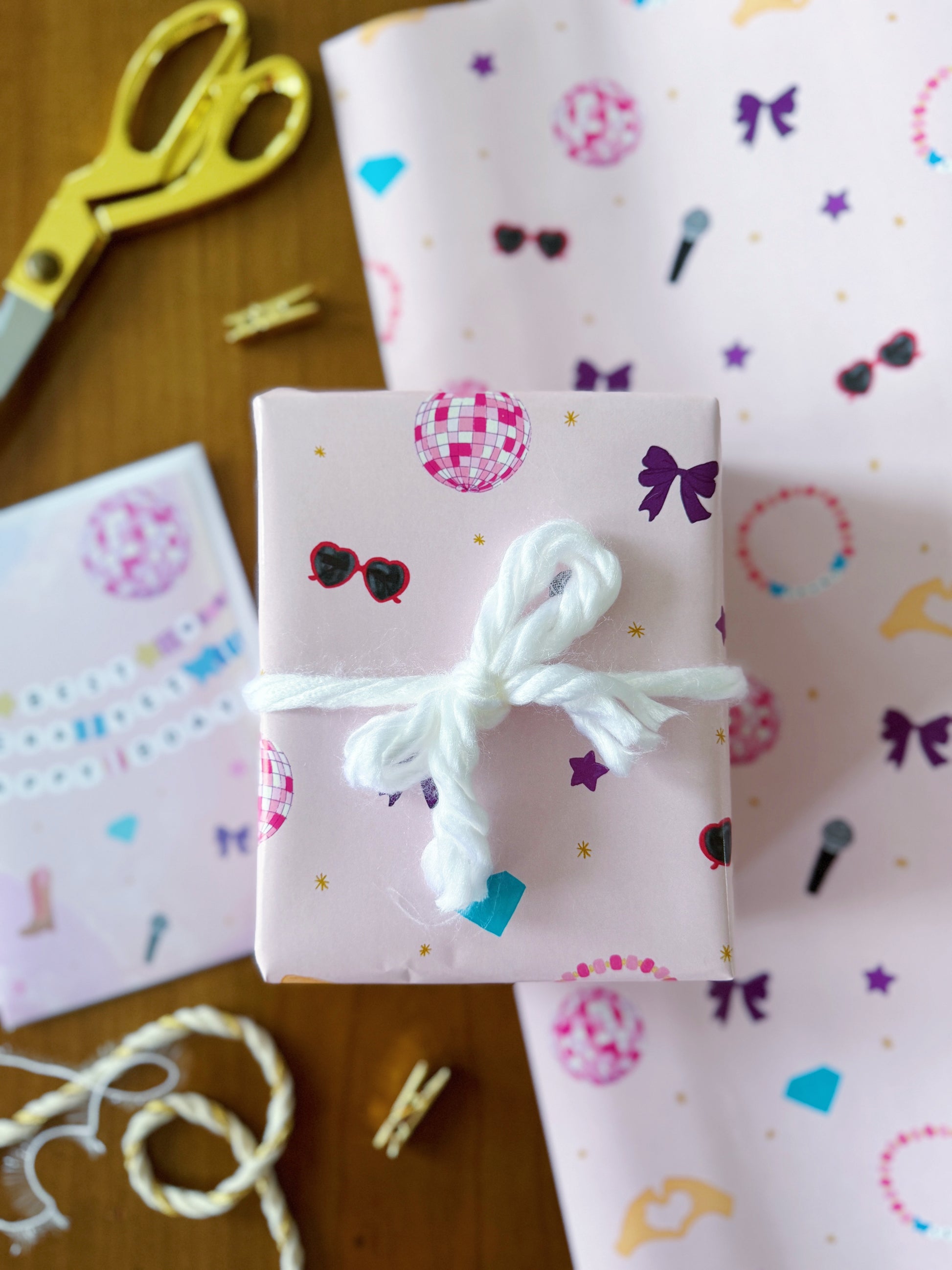 Make your gifts shine with this eras music-themed wrapping paper, inspired by the ultimate pop queen! Featuring a dreamy, fun, and stylish design, this high-quality wrap is perfect for birthdays, concerts, holidays, and special surprises for the biggest fans
